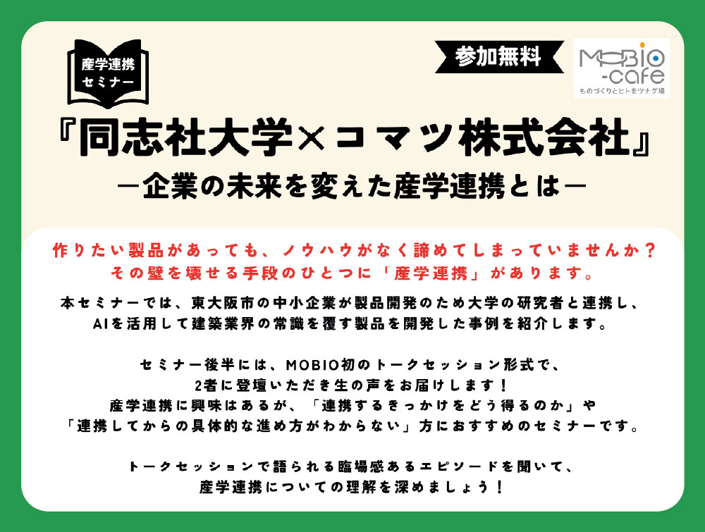 【MOBIO-Cafe】産学連携セミナー<同志社大学×コマツ株式会社>企業の未来を変えた産学連携とは